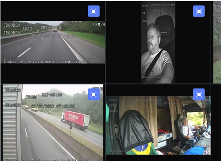 • Todos os caminhões são monitorados, interna e externamente: Contamos com a instalação de câmeras internas e externas em nossos caminhões, com tecnologia de inteligência artificial capaz de detectar anomalias no trânsito e riscos que podem causar acidentes. É a inovação em prol da segurança.